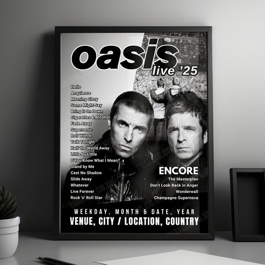 Oasis Setlist Poster - Wembley Stadium, London - July 30th, 2025