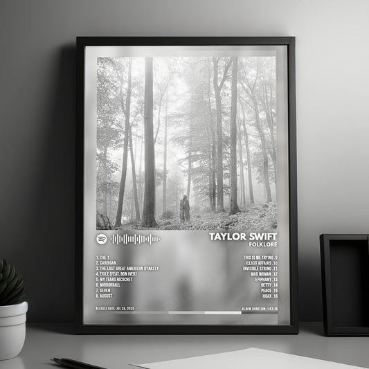 Taylor Swift - Folklore Album Cover Poster - with Complete Tracklist