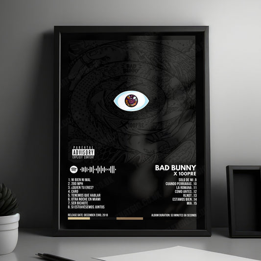 Bad Bunny "X 100pre" Album Cover Poster - with Complete Tracklist