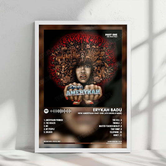 Erykah Badu "New Amerykah Part One (4th World War)" Album Cover Poster - with Complete Tracklist