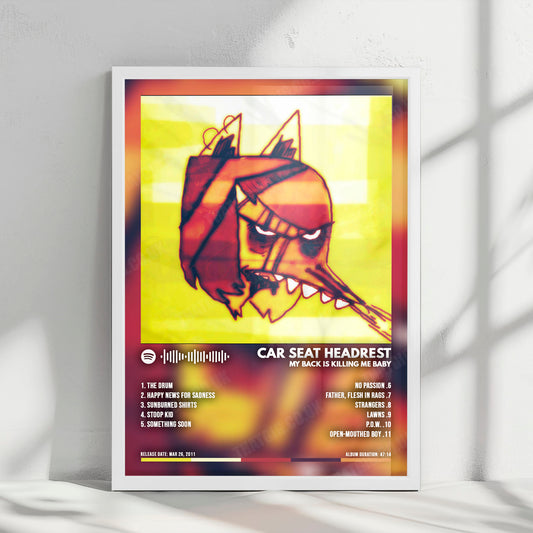 Car Seat Headrest "Headrest My Back Is Killing Me Baby" Album Cover Poster - with Complete Tracklist