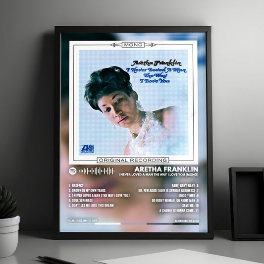 Aretha Franklin "I Never Loved a Man the Way I Love You " Album Cover Poster - with Complete Tracklist