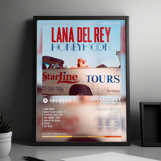 Lana Del Rey "Honeymoon" Album Cover Poster - with Complete Tracklist