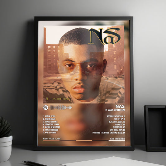 Nas "It Was Written" Album Cover Poster - with Complete Tracklist