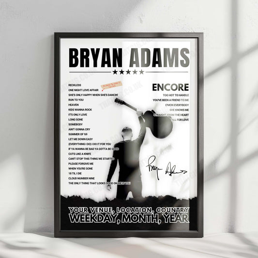Bryan Adams Setlist Poster - Brisbane Entertainment Centre - February 13th, 2025