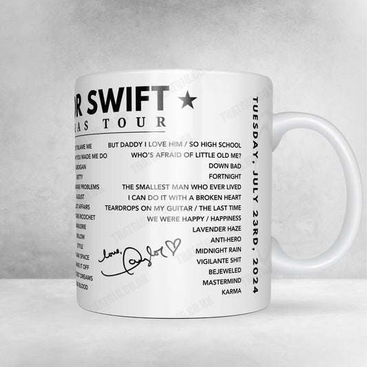 Taylor Swift Setlist Mug - Scottish Gas Murrayfield Stadium, Edinburgh, Scotland - June 9th, 2024