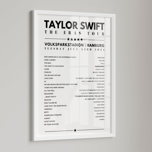 Taylor Swift Setlist Poster - Volksparkstadion, Hamburg, Germany on July 23rd 2024