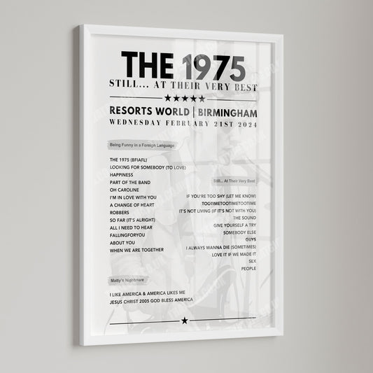 The 1975 Setlist Graphic Poster - Resorts World Arena, Birmingham February 21st, 2024
