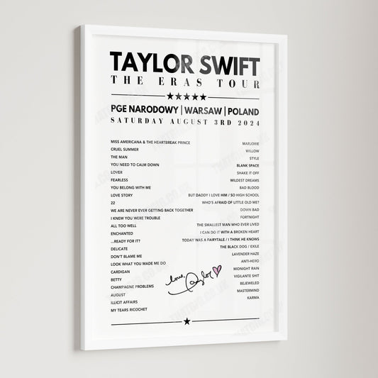 Taylor Swift Setlist Poster - PGE Narodowy, Warsaw - August 3rd, 2024
