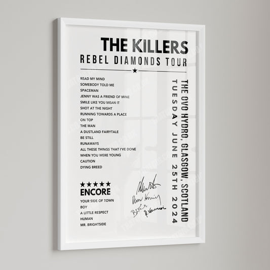 The Killers Setlist Poster - The OVO Hydro, Glasgow - June 25th, 2024