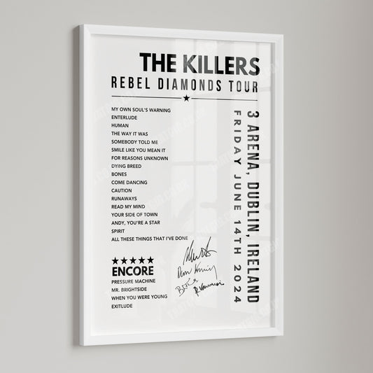 The Killers Setlist Poster - at the 3Arena, Dublin - June 14th, 2024