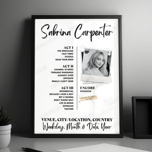 Sabrina Carpenter Setlist Poster - Scotiabank Arena, Toronto, ON, Canada - September 25th, 2024
