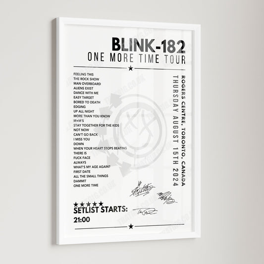 Blink-182 Setlist Poster - Rogers Centre, Toronto - August 15th, 2024