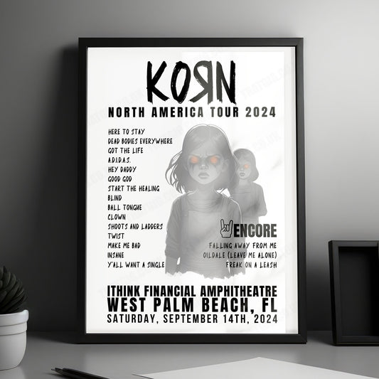 Korn Setlist Poster - iTHINK Financial Amphitheatre, West Palm Beach, September 14th, 2024