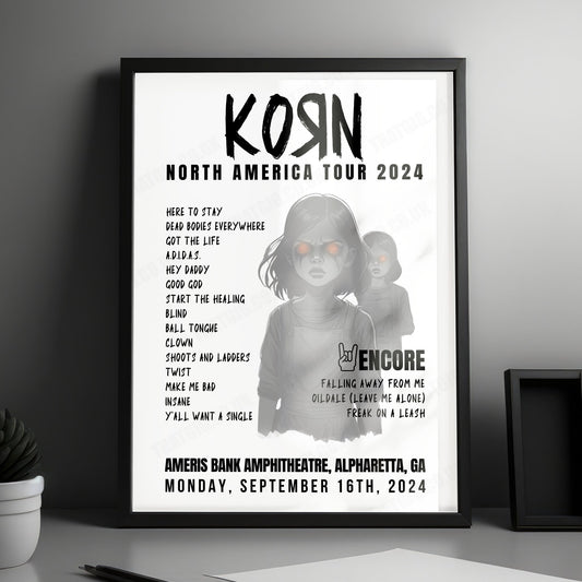 Korn Setlist Poster - Ameris Bank Amphitheatre, Alpharetta, September 16th, 2024