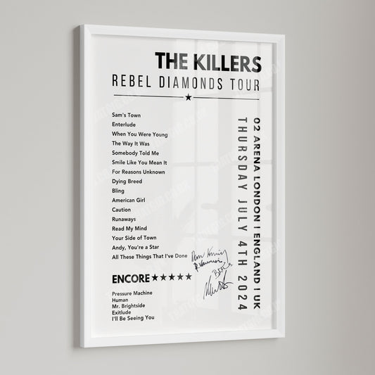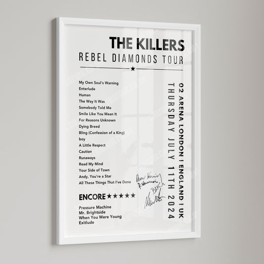 The Killers Setlist Poster - 02 Arena, London, England on July 4th, 2024