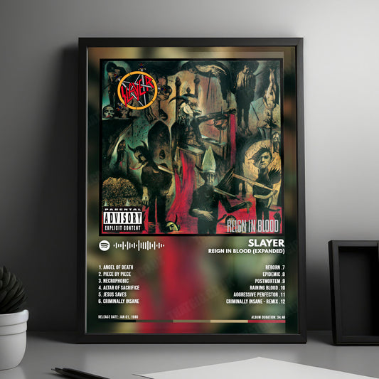 Slayer "Reign in Blood " Album Cover Poster - with Complete Tracklist