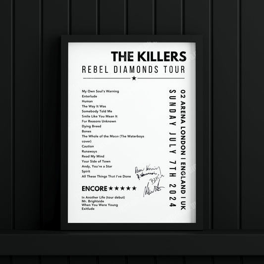 The Killers Setlist Poster - 02 Arena, London, England on July 7th, 2024