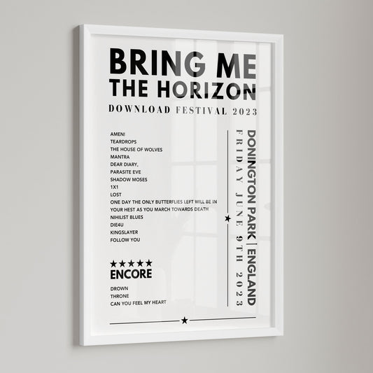 Bring Me The Horizon Setlist Poster - at Donington Park, England, June 9th, 2023