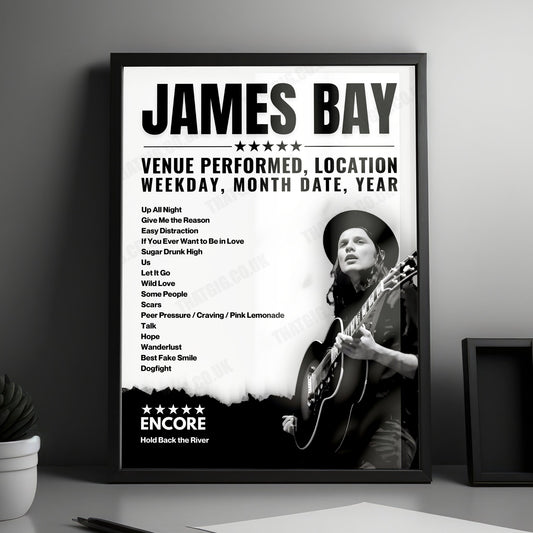 James Bay Setlist Poster - O2 Academy, Edinburgh - February 2nd, 2025