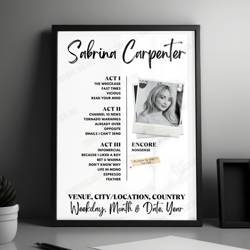 Sabrina Carpenter Setlist Poster - The O2 Arena - March 9th, 2025